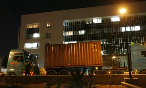 Τα τέσσερα κοντέινερ συνοδεύονταν καθ' όλη τη διάρκεια από τεθωρακισμένα οχήματα με ένοπλους άνδρες των ειδικών δυνάμεων και ελικόπτερα της αστυνομίας, δημιουργώντας μια πομπή μήκους 200 περίπου μέτρων.